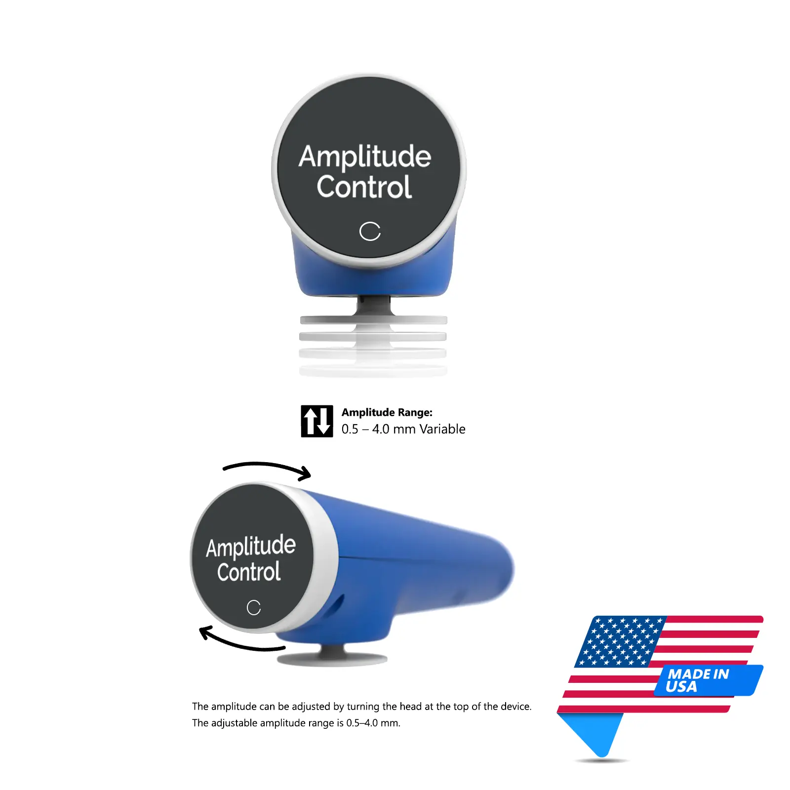 • Adjustable Intensity [Amplitude Range 0.5 – 4.0 mm Variable]